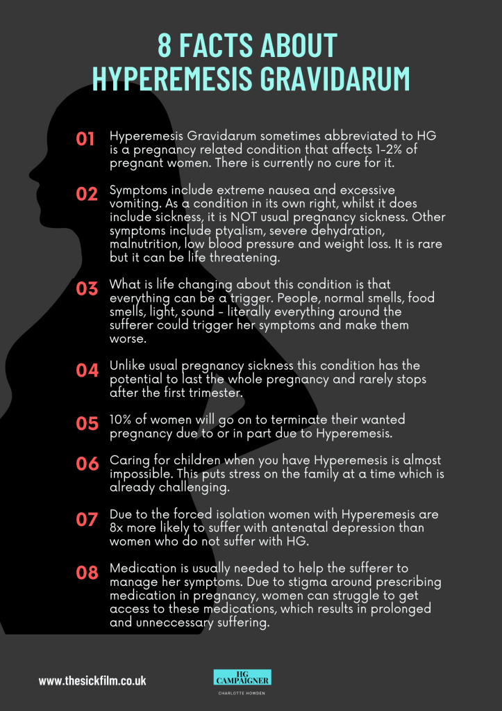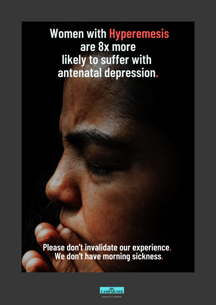 A poster to inform people of how women with HG are 8x more likely to suffer with antenatal depression than women who have not suffered with Hyperemesis.